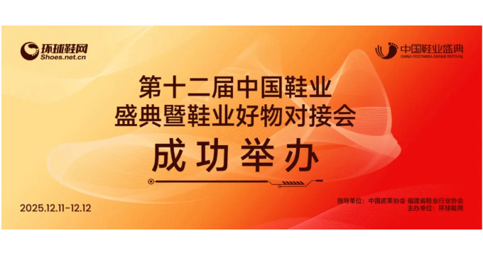 由福建讯网网络科技股份有限公司(环球鞋网)主办,中国皮革协会、福建省鞋业行业协会指导的 第十二届中国鞋业盛典暨鞋业好物对接会 于 2025年12月11日-12日 在泉州荣誉国际酒店隆重召开。